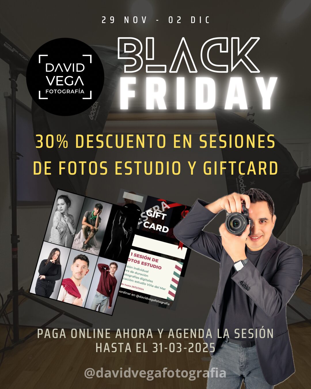 En Sesiones de Fotos de Estudio. Pagando ahora y agendando hasta el 31 de marzo 2025.